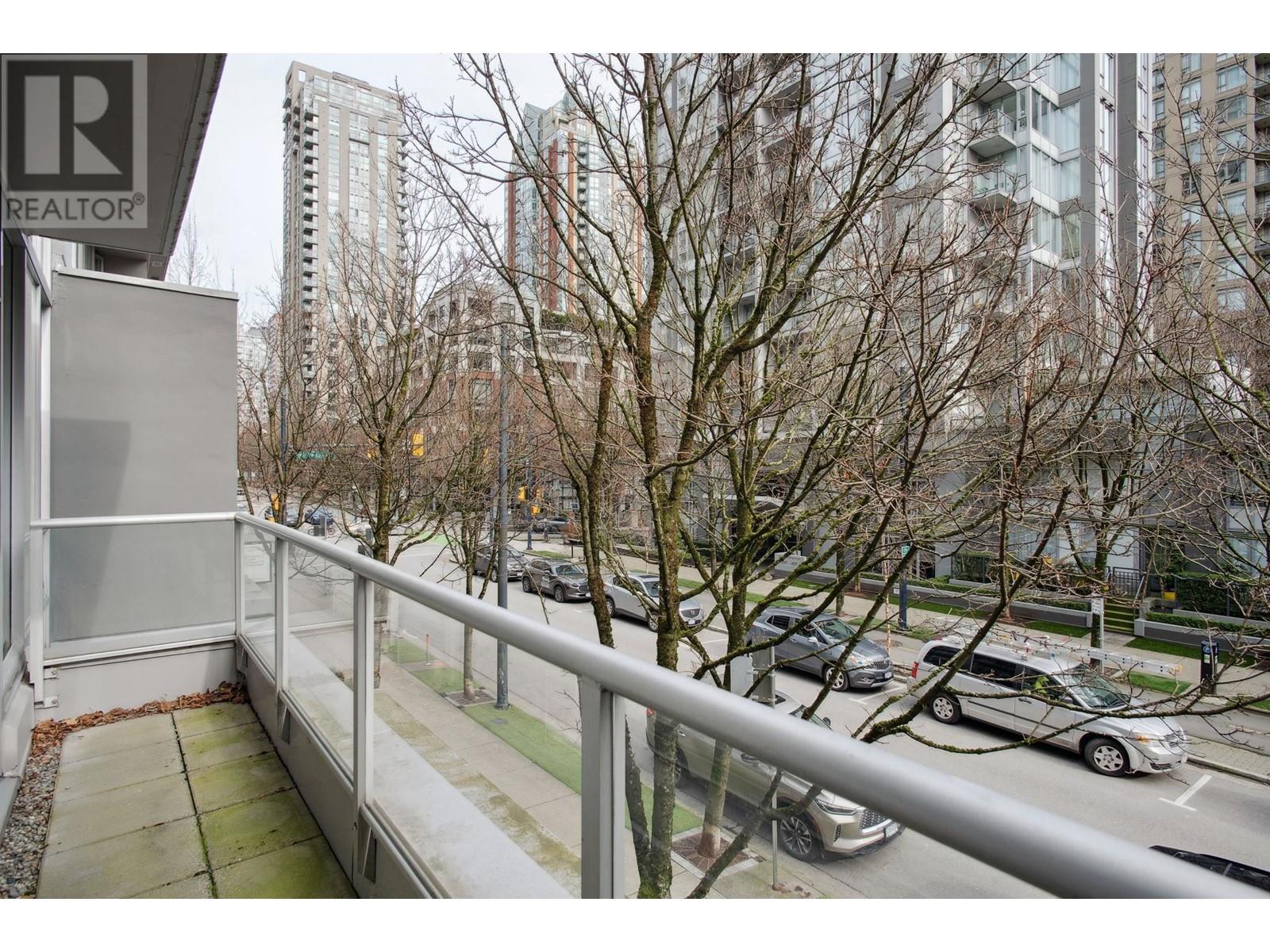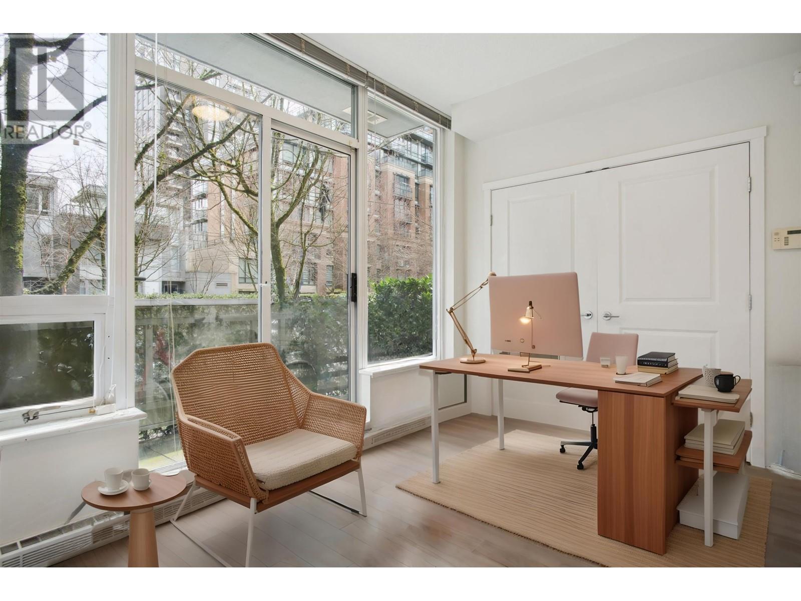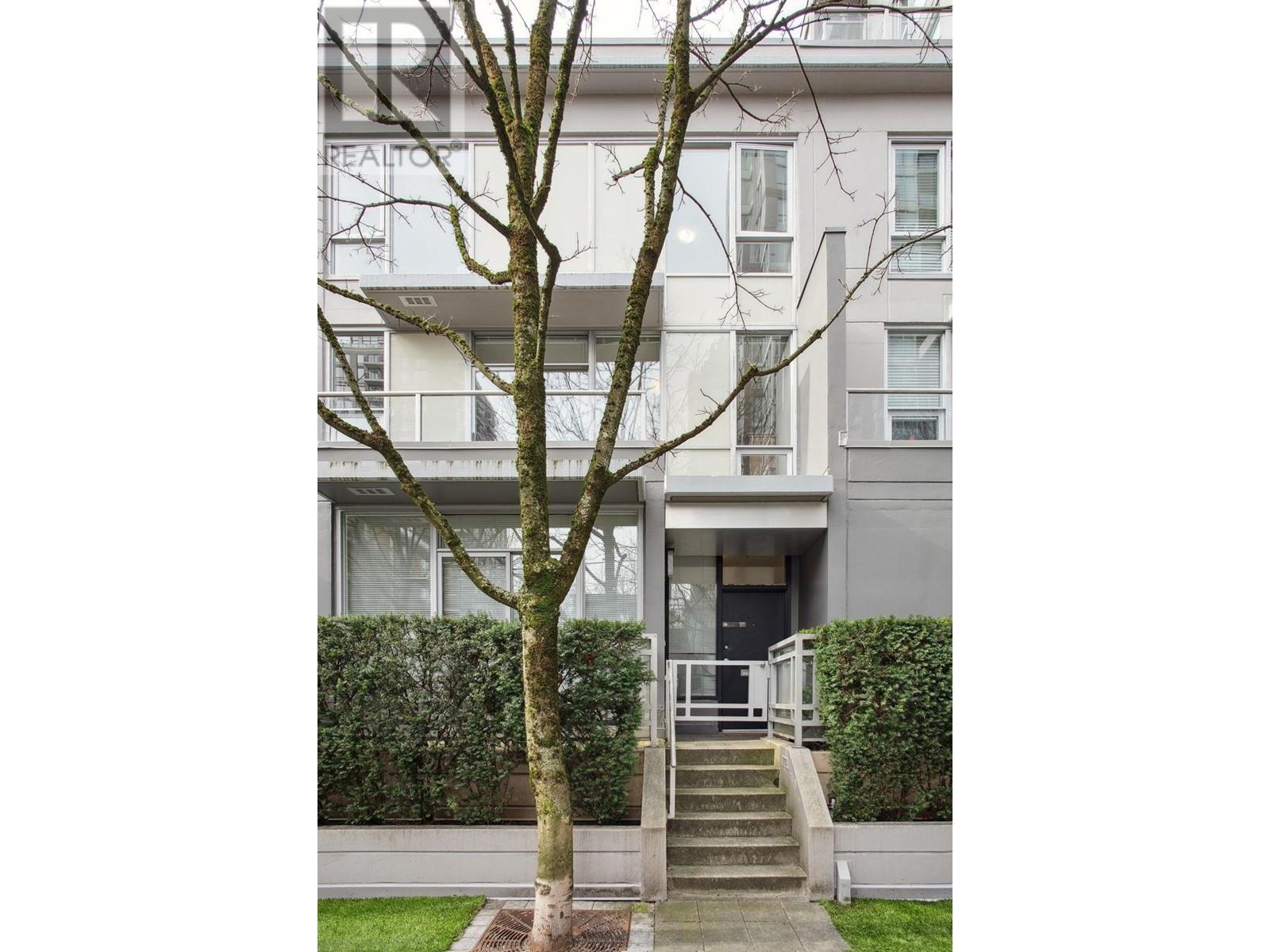 Discover city living at Miró by Polygon! This bright 2 bed + large den townhome offers an open-concept layout with windows on both sides. Enjoy ample outdoor space with 2 balconies + a private patio (21'8 x 8'5) that opens to a lush courtyard. Updated flooring throughout adds a fresh touch. Comes with 2 parking stalls + 1 storage locker for convenience. Unbeatable location where Downtown meets Yaletown-steps to Emery Barnes Park, the Restaurant District & Yaletown SkyTrain. A rare urban retreat! (id:54355)