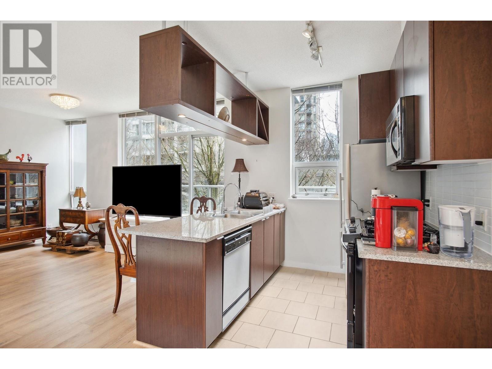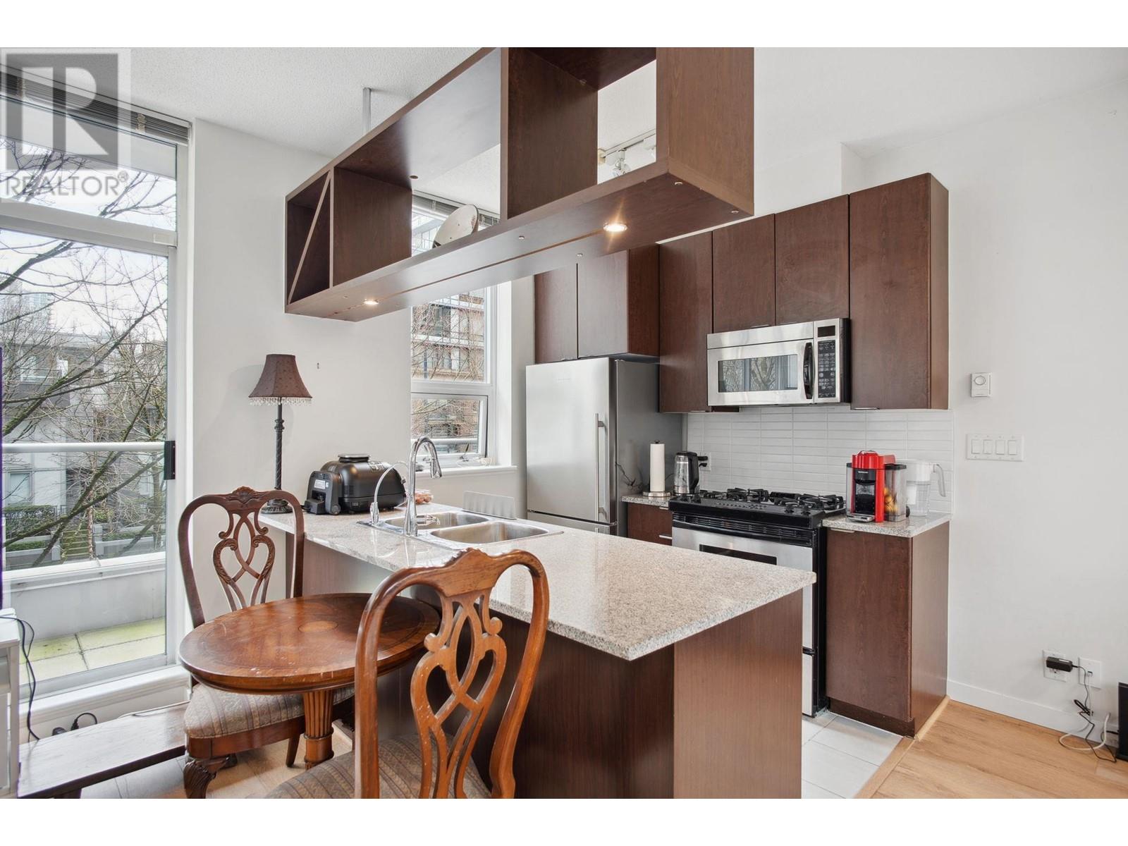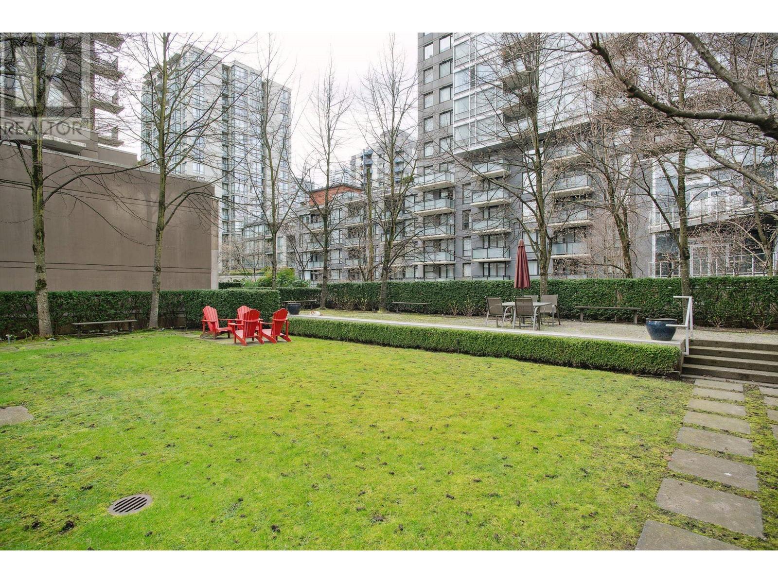 Discover city living at Miró by Polygon! This bright 2 bed + large den townhome offers an open-concept layout with windows on both sides. Enjoy ample outdoor space with 2 balconies + a private patio (21'8 x 8'5) that opens to a lush courtyard. Updated flooring throughout adds a fresh touch. Comes with 2 parking stalls + 1 storage locker for convenience. Unbeatable location where Downtown meets Yaletown-steps to Emery Barnes Park, the Restaurant District & Yaletown SkyTrain. A rare urban retreat! (id:54355)